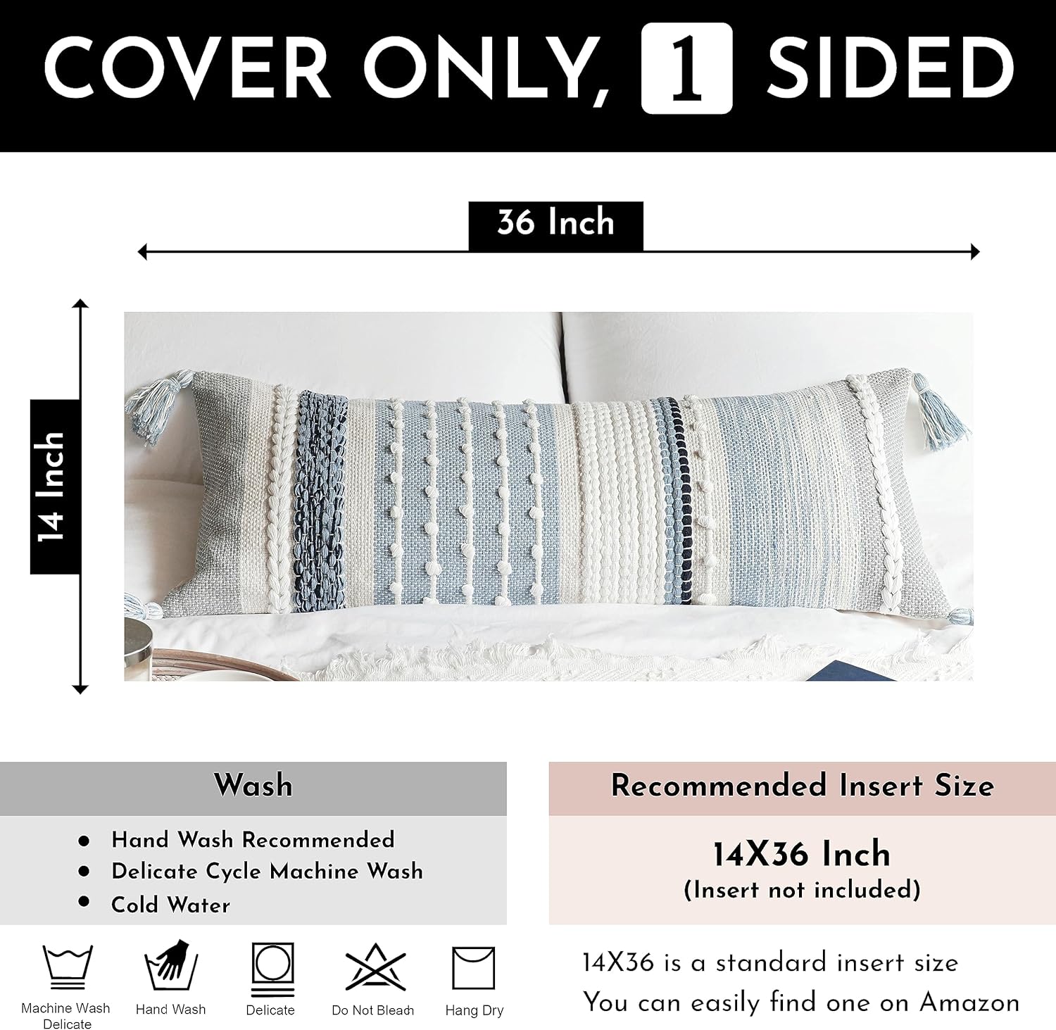 Coastal Blue Decorative Lumbar Pillow Cover 14x36 Boho Long Body Pillow for Bed Farmhouse Lumbar Throw Pillow for Couch Modern Accent Textured Throw Pillowcase