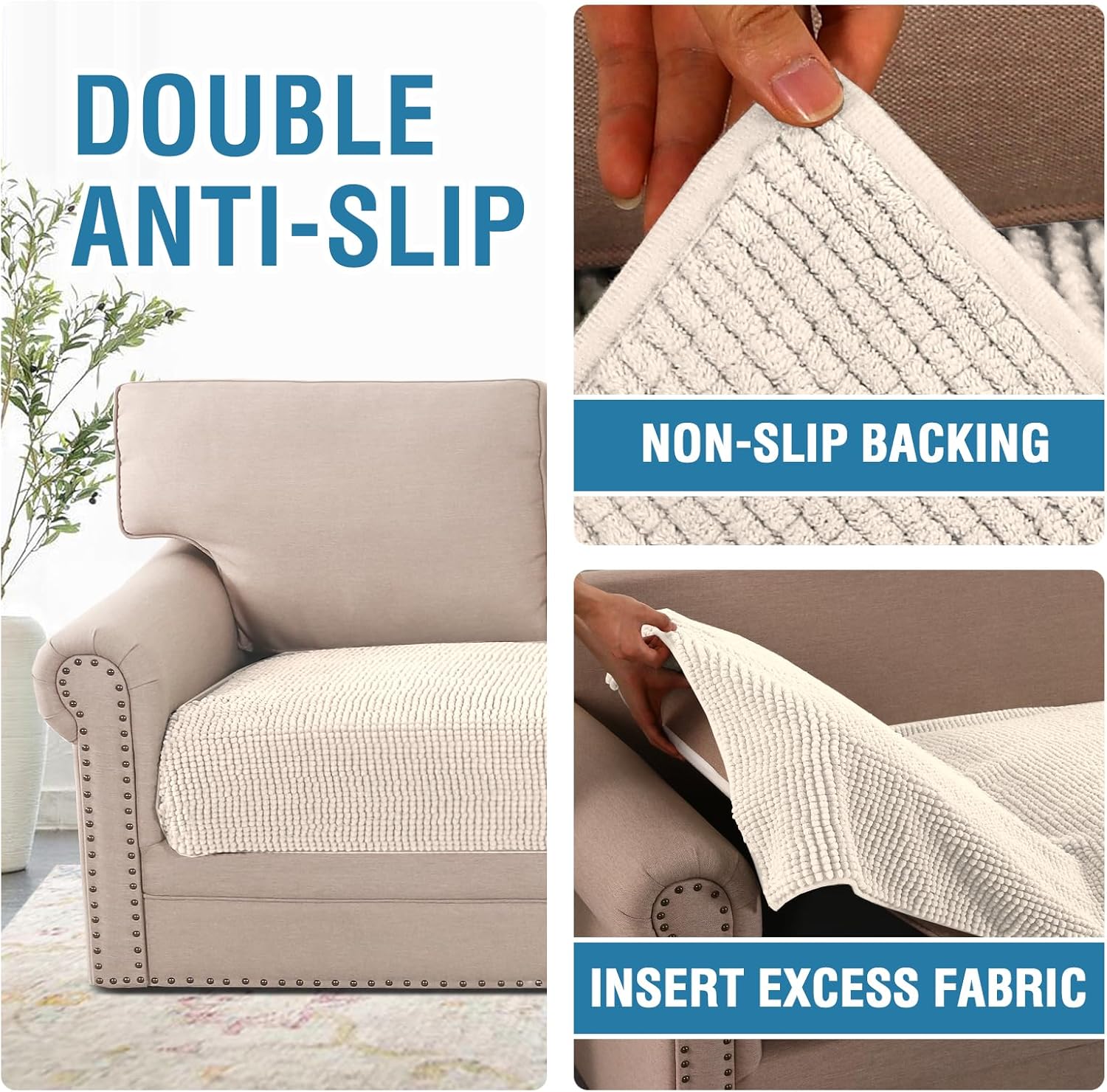 H.VERSAILTEX Plush Chenille Dog Bed Cover Thick Soft Sofa Cover for 3 Cushion Couch Anti Slip Couch Cover Furniture Protector for Dog, Pet, Cat (35" x 74", Ivory)