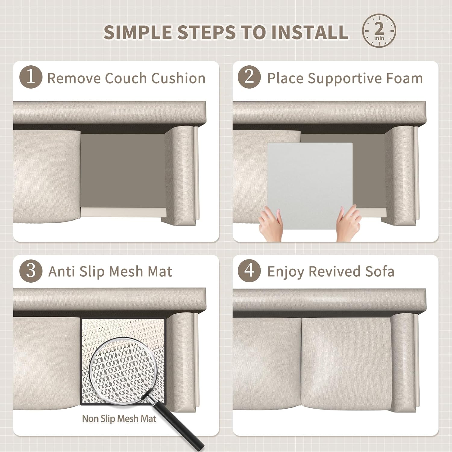 HAVARGO Couch Cushion Support High Density Foam 22X22X2.4 Inches Sofa Couch Supports for Sagging Cushions Light Grey 3Pc with Anti Slip Mesh Fabric