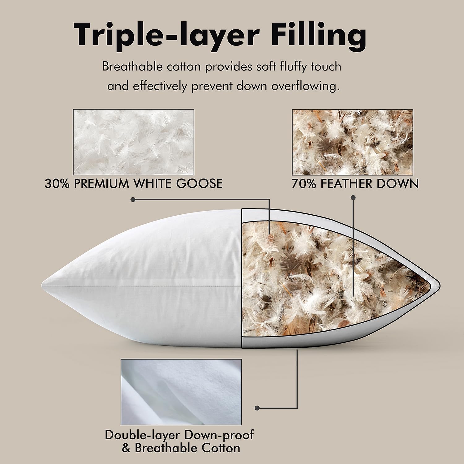 MIULEE 20 x 20 Goose Feather Down Pillows with 100% Cotton Cover, Set of 2 Soft Fluffy Decorative Pillow Inserts for Sofa Bed Couch Living Room White