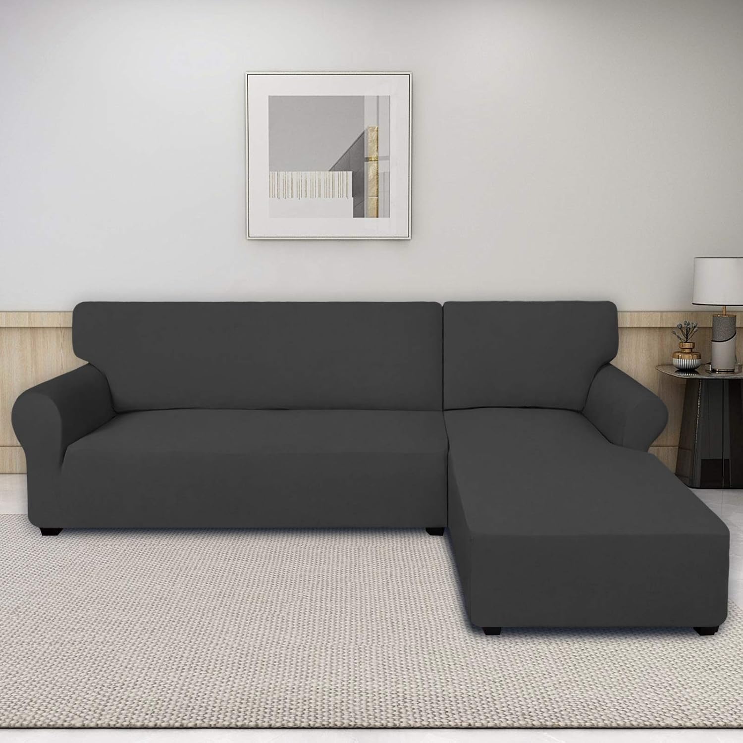 PureFit Super Stretch Sectional Couch Covers - 2 pcs Spandex Non Slip, with Elastic Bottom for L Shape Sectional Sofa Couches, Great for Kids & Pets (3 Seat Sofa + 3 Seat Chaise, Dark Gray)