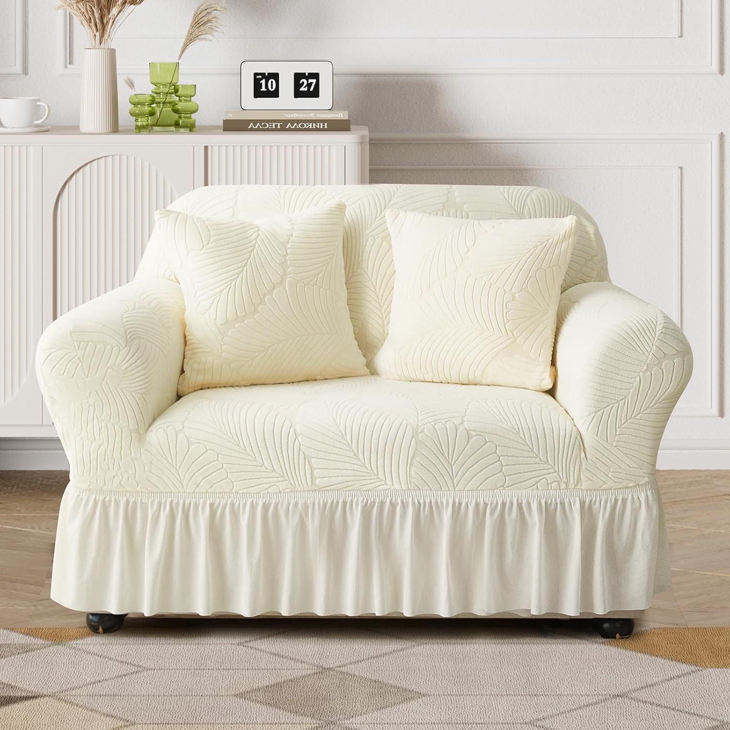 WONGS BEDDING Stretch Velvet Sofa Slipcover, Cushion Couch Cover with Skirt, Pet Friendly Durable Washable Stretchable, Easy Fit Universal Furniture Protector, (75"-91",Classic Blue)